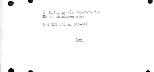 //// I början av vår vänskaps tid //// Du sa s& åången gång //// 6:4 SLS 541 s. 565-566 //// ÅBO. ////