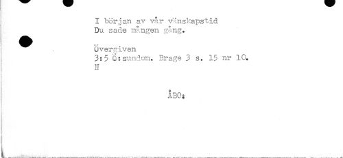 //// I början av var vänskapstid //// Du sade mången gång. //// Övergiven //// 3:5 snndoHi. Brage 3 s. 15 ur 10. //// ! w //// ÅBO: ////