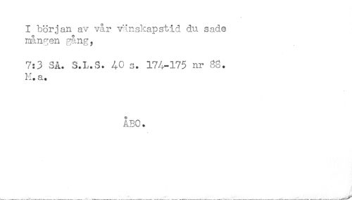 //// I början av vår vänskapstid du sade //// mången gång, //// 7:3 SA. S.L.S. 40 s. 174-175 nr 88. //// M. a. //// ÅBO. //// * ////