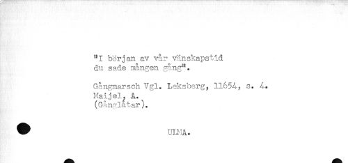 //// t*I början av vår vänskapstid //// du sade mången gång". //// Gångmarsch Vgl. Leksberg, 11654- s. 4. //// Maljel^ A.^ //// (Gånglåtar). ////