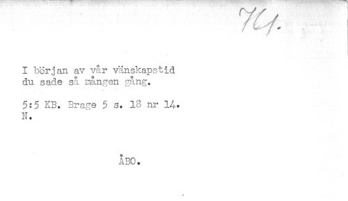 //// I början av vår vänskapstid //// du sade så mången //// ... . ^ //// 5:5 KB. Brage 5 s. 18 nr 14. //// N. //// ÅBO. ////