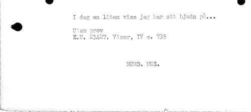 //// I dag en liten visa jag har att bjuda på... //// Utan rrov //// E.U. 21427. Visor, W s. 735 //// i NORD. MUS. //// ! //// ! //// ____, ^^ , _ _ ^ _ / ////