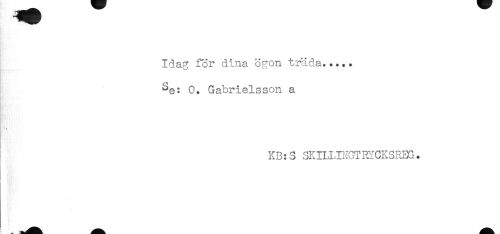 //// Idag för dina ögon träda..... //// ^e: 0. Gabrielsson a //// * //// KB:S SKILLINCTHYCKSREG. ////