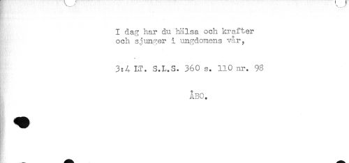//// I dag har du hälsa och krafter //// och sjunger i ungdomens vå.r, //// 3:4 LT. S.l.S. 360 s. 110 nr. 93 //// . //// ÅBO. ////