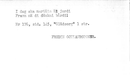 //// I dag ska nartäin äi jordi //// Fy arm nä di däukni bårdi^ ! //// t //// Nr 176, sid. 1A5, "Glädsorg'* 1 str. //// i //// ! //// ! //// ! //// FREDIN GOTI-ANDSTCNBR. ////