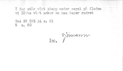 //// I dag står vårt skepp under segel på floden //// vi lätta vårt ankar en man tager rodret j //// 5:4 SN IHE 34 s. 61 //// N s. 80 //// vi ^ryM ^ //// ÅBO. F //// < ////