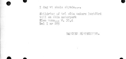 //// I dag vi skola skynda.... //// Skildring af t va såta makars lustfärd //// till en skön naturuark //// Elen mms... W. 31,4 //// Del I nr 28$ //// RANCKEH ////