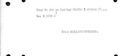 //// Idag är det en festdag därför I skolen få.... //// 3 //// Se: E 1905 k //// KB:S SKILLINGTRYCKSREG. //// A ////
