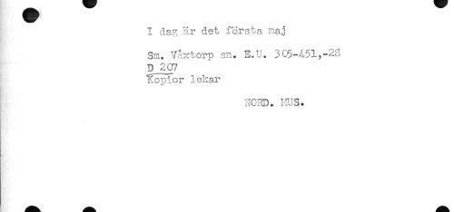 //// I dar? är det första maj //// Sm. Vaxtorp sn. E.U. 305-451,-28 //// D 207 //// Hopior lekar //// Ht //// NC3D. HUS. ////