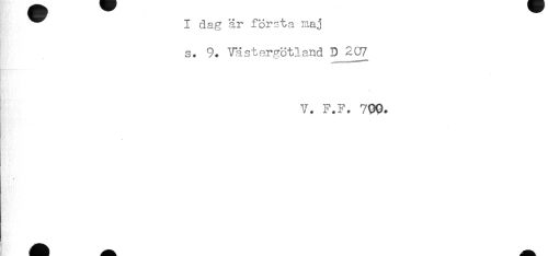 //// ^^ I dag är första maj //// s. 9. Västergötland D 207 //// V. F.F. 709. ////