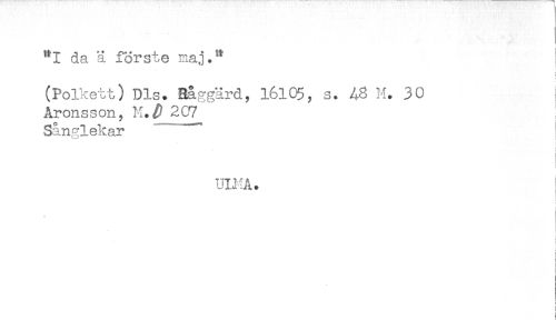 //// "I da ä förste maj." //// (Polkett) Dis. aåggärd, 16105, s. A8 H. 30 //// Aronsson, K.^ 207 //// Sånglekar " //// L___-1 //// t //// UIHA. //// * //// i //// ! //// t //// < ////