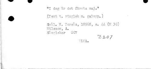 //// dag är det första maj . //// ^^ (Text t. ringlek m. galopp. ) //// V. Torsås, 15568, 3. (M 30) //// Nilsson, A. //// Sånglekar 2C7 //// ULHA. ////