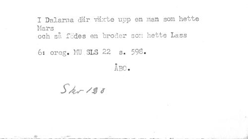 //// I Dalarna där växte upp en man som hette //// Mars //// och så fcdes en broder som hette Lass //// 6: oreg. MU.3LS 22 s. 593. //// ABC. //// -... -....'t*-" ^ ////