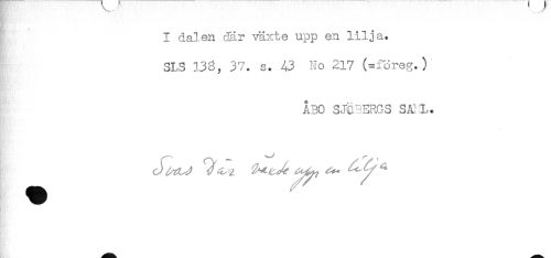 //// I dalen där växte upp en lilja. //// SLS 138, 37. s. 43 No 217 (=föreg.) //// ÅBO SJÖBERGS SA L. ////