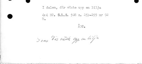 //// ) I dalen, där växte upp en lilja //// ^ 4:4 HC. S.L.S. 5C6 s. 253-255 nr 92 //// Å30. //// t //// ! //// * //// # ////