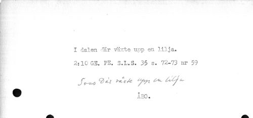 //// I dalen där växte upp en lilja. //// 2:10 GE. PE. S.L.S. 35 s. 72-73 nr 59 //// * ÅBO. ////