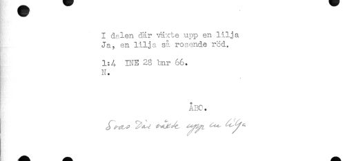 //// I dalen dar växte upp en lilja //// Ja, en lilja så ros ende red. //// 1:/, INE 28 bnr 66. //// N. //// ABC. ////