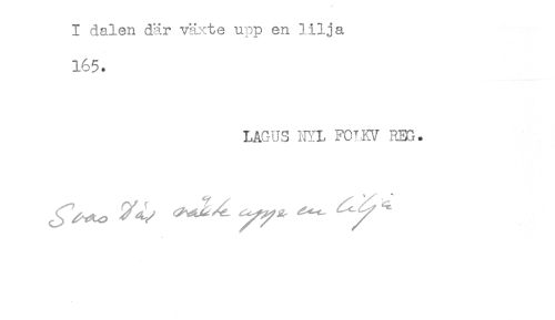 //// I dalen där växte upp en lilja //// 165. //// LAGUS NYL FCiKV REG. ////