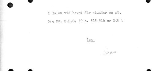//// I dalen vid havet där stundar en mö, //// 5:A MU. S.L.S. 19 s. 515-516 nr 202 b //// ÅBO. //// t ////