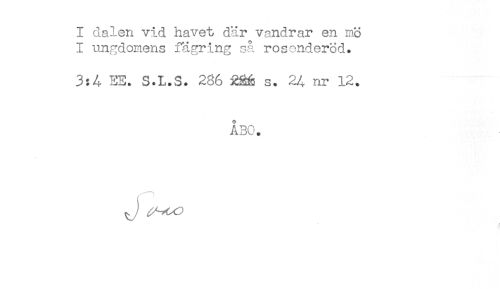 //// I dalen vid havet där vandrar en mö //// I ungdomens fägring så rosonderod. //// 3:4 EE. S.L.S. 286 s. 24 nr 12. //// ÅBO. ////