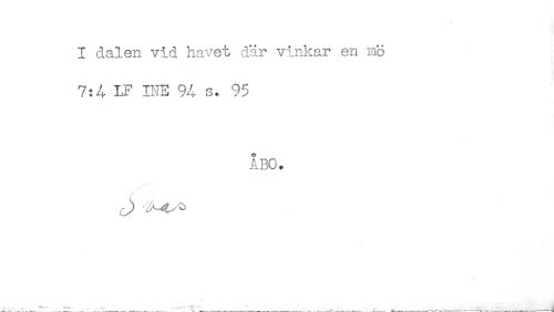 //// I dalen vid havet där vinkar en mö //// 7:4 LF INE 94 s. 95 //// ÅBO. //// J) ' //// ^ __ _ _ ^ ^ ////