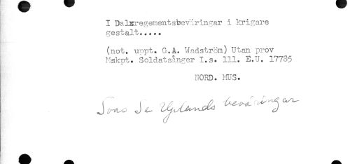 //// I Da ksr e g emen t s b o v' * r in gar i krigare //// gestalt..... //// (not. uopt. G.Å. Wadström) Utan prov //// !!skpt. Soldatsånger I.s. 111. E.U. 17785 //// NORD. MUS. ////