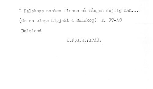 //// I Dalskogs socken finnes så mången dejlig man... //// (Om en olaga älgjakt i Dalskog) s. 37-40 //// Dalsland //// I.F.G.H.:1748. ////