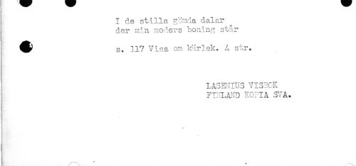 //// I de stilla, gömda dalar //// der min moders boning står //// ^ s. 117 Visa om kärlek. 4 str. //// ! //// LASENIUS VIS' 'K //// FINLAND KOPIA ;?JA. //// i' t //// - //// - ////