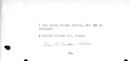 //// I den stora staden Boston, där b&r en //// adelsman //// A 484:26 Oliana str. fragm. //// RÅ. //// * ////