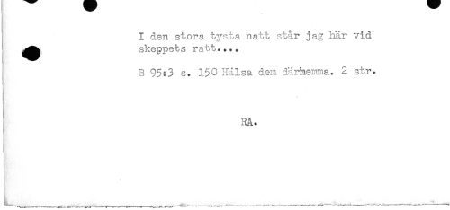 //// I den stora tysta natt står jag här vid //// ^^ skeppets ratt.... //// B 95:3 s. 150 Hälsa dem därhemma. 2 str. //// i //// RÅ. //// [P' //// * //// ......^ _ ^ ^ _ ^ ______...___ ////