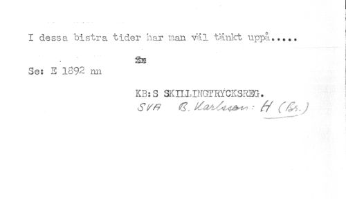 //// I dessa bistra tider har man väl tänkt uppå..... //// gg //// Se: E 1892 nn //// KB:S SKILIJNGTRYCKSREG. ////