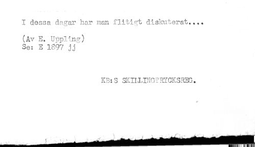 //// I dessa dagar har man flitigt diskuterat.... //// (Av E. Uiipltng) //// Se: E 1897 jj //// KB:S SKI1HNGTHYCKSRBG. //// ------- " ... ////