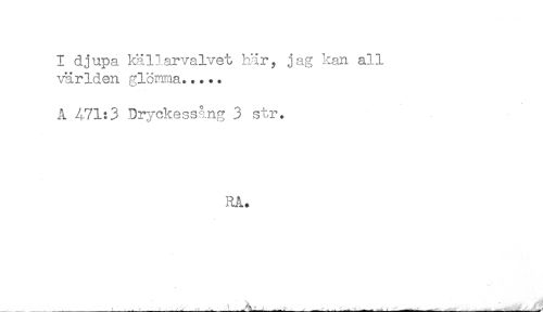 //// 1 djupa källarvalvet kär, jag kan all //// världen glömma*.... //// . t //// A 471:3 Dryckessång 3 str. //// RÅ. ////