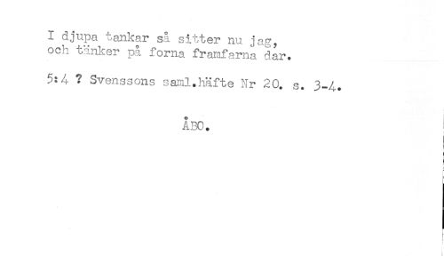 //// I djupa tankar så sitter nu ja.?, //// och tänker på forna framfarna dar. //// 5:4 ? Svenssons saml.häfte Nr 20. s. 3-4. //// ABC. //// < //// t ////