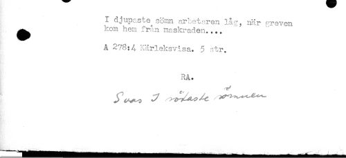 //// I djupaste^ söim arbetaren låg, när -reven //// ^^ kom hem från maskraden.... //// Å 278:4 Kärleksvisa. 5 tr. //// RA. //// - //// }} //// - //// .___ ////