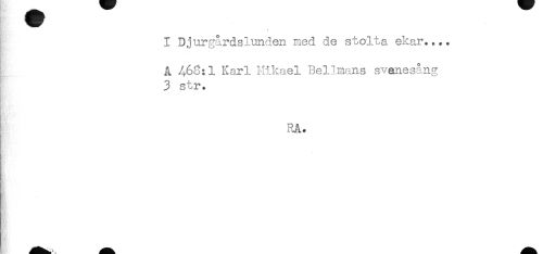 //// I Djurgårdslunden ned de stol.ta ekar.... //// K' o //// A 463:1 Karl Mikael Bell mans svanesang //// 3 str. //// RA. //// B- ////