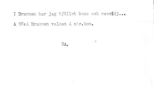 //// .... t //// < //// < //// I Drammen har jag tjället kone och rese*§Sj..+ , //// A 98:4 Dragen valsen 4 str.kom. ' //// ! //// t //// RA. ////
