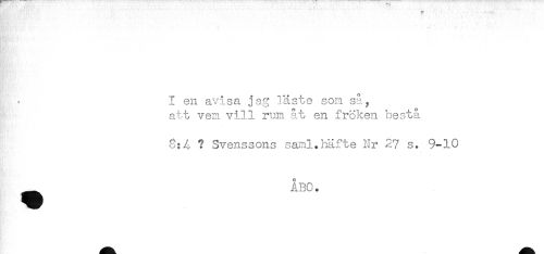 //// I en avi sa jag läste son så, //// att ven vill ruin åt en fröken bestå //// 8:4 ? Svenssons saml.häfte Nr 27 s. 9-10 //// ^ ÅBO. ////