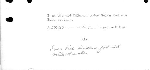 //// i I en båt vid Mälarstranden Selma med sin //// luta satt.... //// A AC9:30—-------2 str. fragm. not.kom. //// , ////