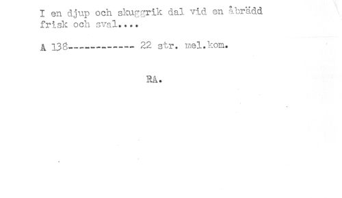 //// I en djup och si-rurgriK aai vi.o. en //// frisk och sval..*. //// 13g____— 22 str. mel.kom. //// RA. //// * ////