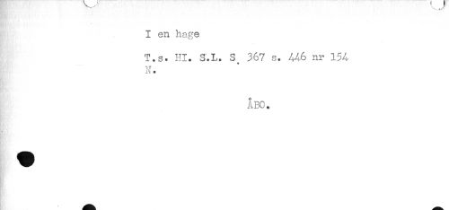 //// - //// tmHMt * //// I en hage //// T.s. Hl. S.L. S 367 s. 446 nr 154 //// 'V //// * //// ÅBO. //// . //// - ////