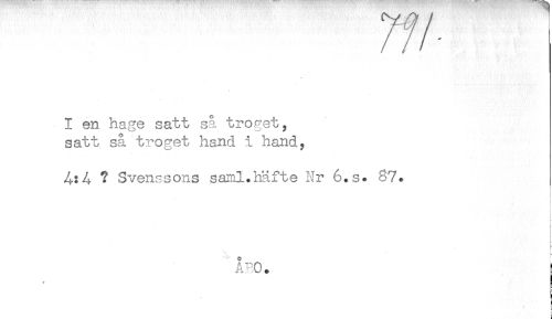 //// 77/< //// I en hage satt så troget, //// satt så troget hand i hand, //// ? Svenssons saml.häfte Nr 6.s. 87. //// ! //// t //// r //// ÅBO. ! //// S //// c //// i //// ; //// ! //// L ////