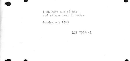 //// TV //// I en have s^.d så ene //// sad så ene hand i hand... //// - //// Landskrona (Sk) //// LUF 2942:41 //// * //// —' //// it) ////