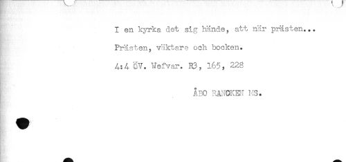 //// I en kyrka det sig hände, att när prästen... //// Prästen, väktare och bocken. //// SV. Wefvar. R3, 165, 228 //// ÅBO RMDKEN MS. ////