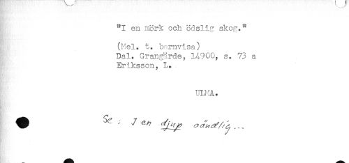 //// en mörk och ödslig skog." //// (Mel. t. barnvisa) //// Dal. Grangärde, 14900, s. 73 a //// Eriksson, L., //// UU-IA. ////