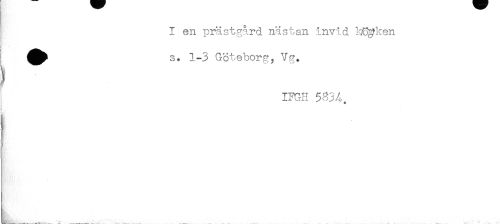 //// I en prästgård nästan invid kO^ken //// ( //// i ^^ s. 1-3 Göteborg, V g. //// IFGH 5834. //// v - ////