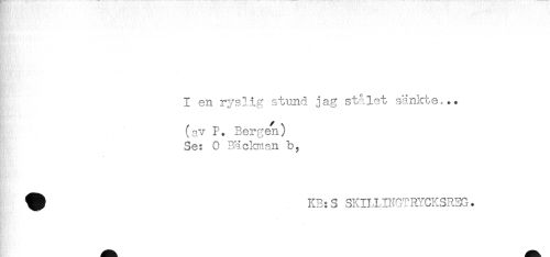 //// I en ryslig stund jag stålet sänkte... //// (av P. Bergen) //// Se: O Bäcknian b, //// ^ KB:S SKILIIN0TRYCKSR3G. ////