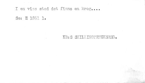 //// I en viss stad det finns en krog.... //// Se: E 1361 1. //// KB:S SHILI.INGTRYCKSREG. ////