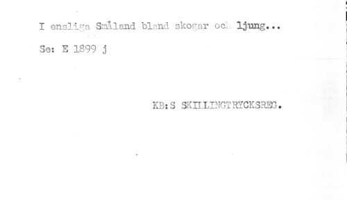 //// ' * //// I ensliga Småland bland skogar ock ljung... //// Se: E 1899 j //// ) //// * //// i //// i //// t //// r //// t //// i //// t //// KR:S SKI1HNGTRYCKSREG. //// ! //// j //// i //// < //// < //// # ////