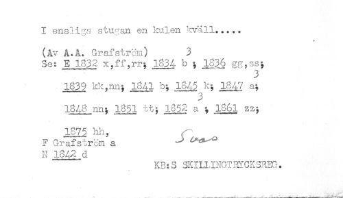 //// * //// (A? A.A. Grafstr?jm) 3 //// Se: E 1832 x,ff,rr; 1834 b ; 1836 gg,ss; //// 3 //// 1839 kk,nn; 1341 b; 18^5 k; 18^7 a; //// 3 //// 1848 nn; 1851 tt; il52 a ; 1861 zz; //// 1875 bli, //// F Grafs^räm a ^^ //// N 1842 d //// KB:3 SKILIINGTRYCKSREG. ////